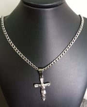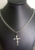Colar em cordão tipo corrente em aço inoxidável 316 L, com pingente de Jesus crucificado.